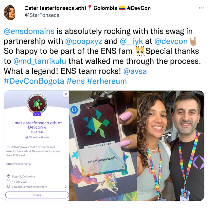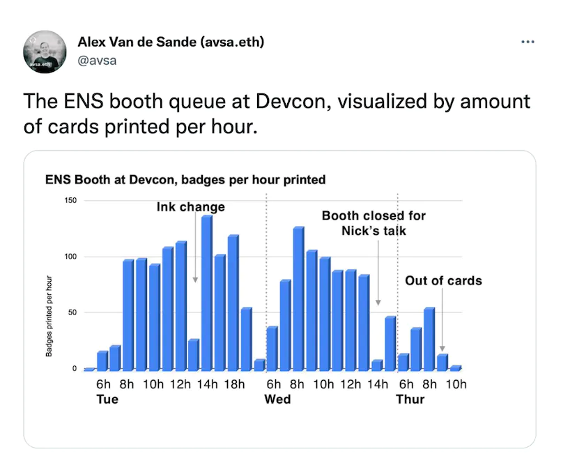 If you attended this year's Devcon, you may have noticed the long queue coming out of the ENS booth.