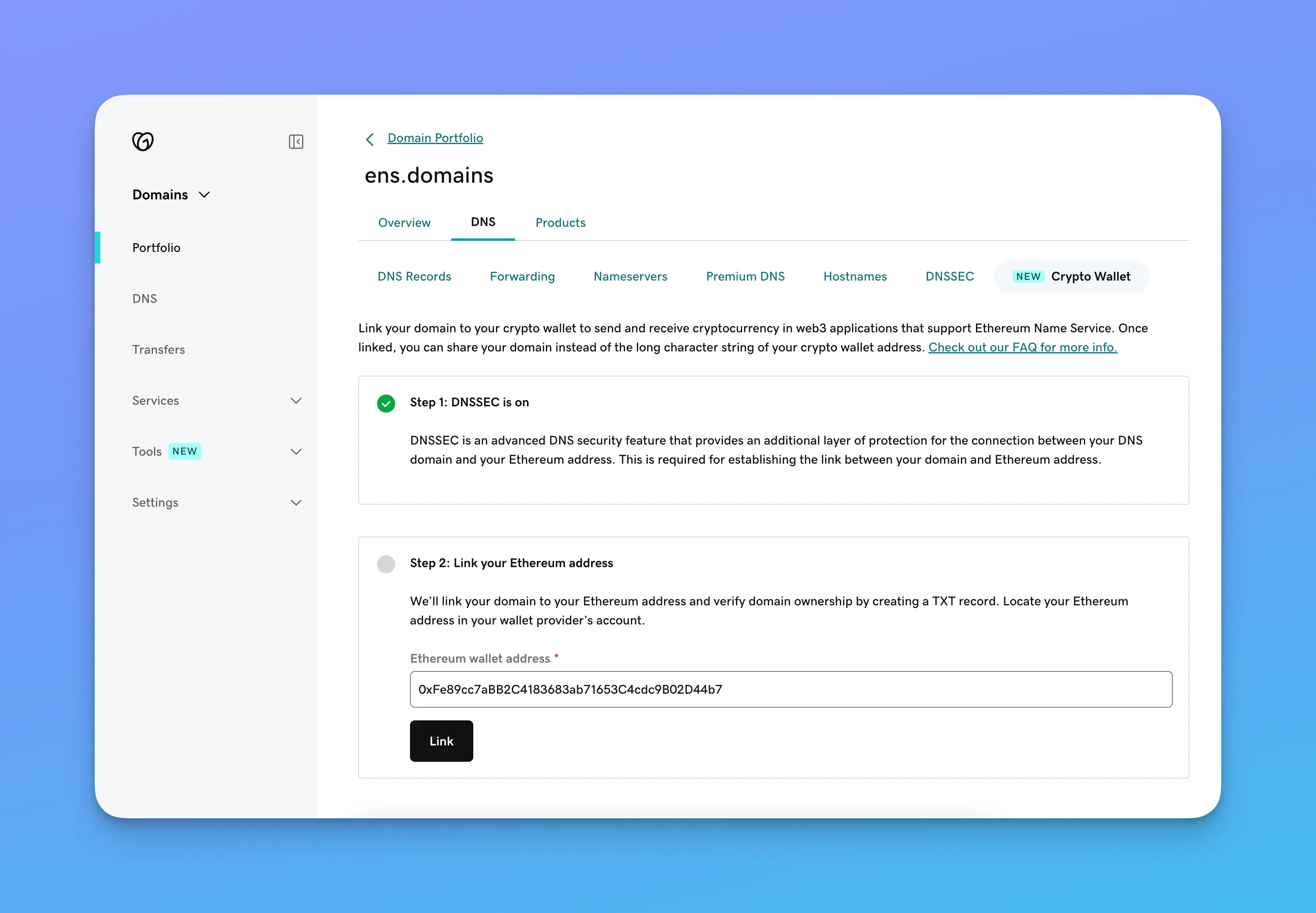We've partnered with GoDaddy to make it easier for their customers to use DNS domains in the ENS ecosystem.